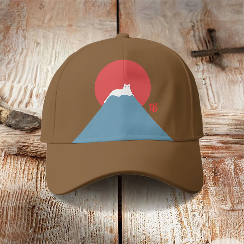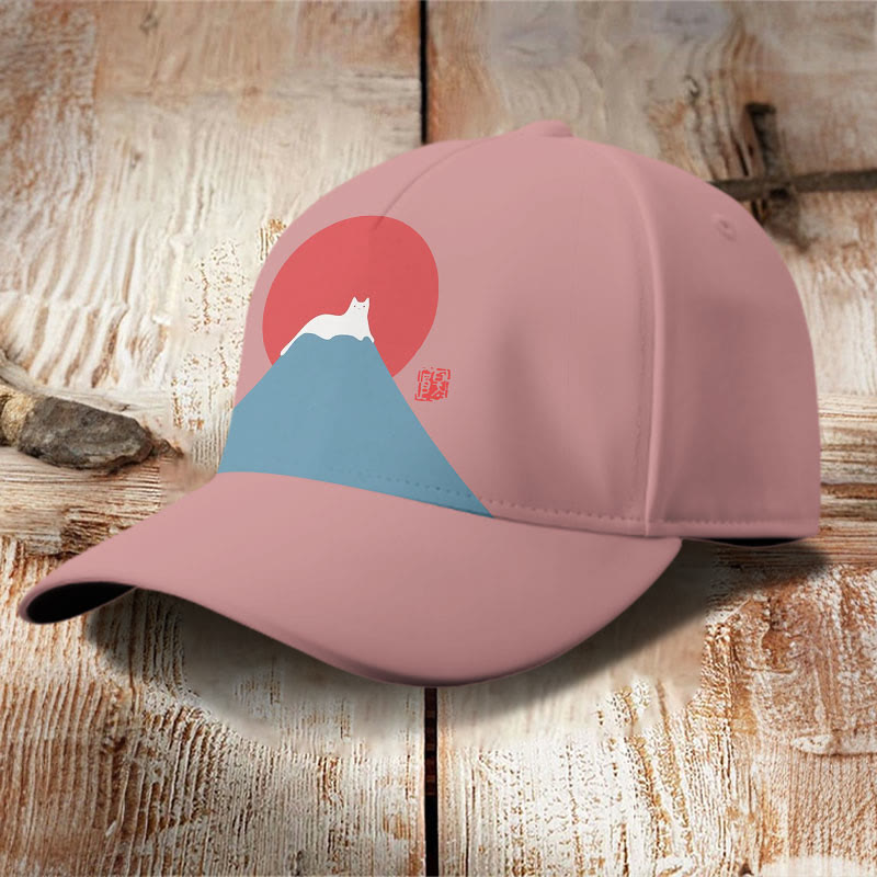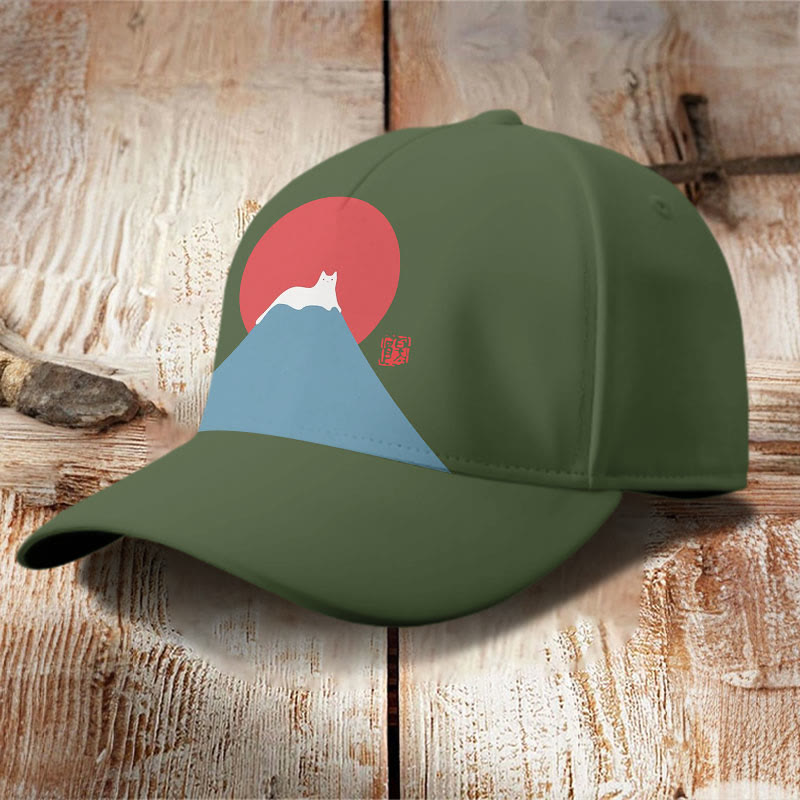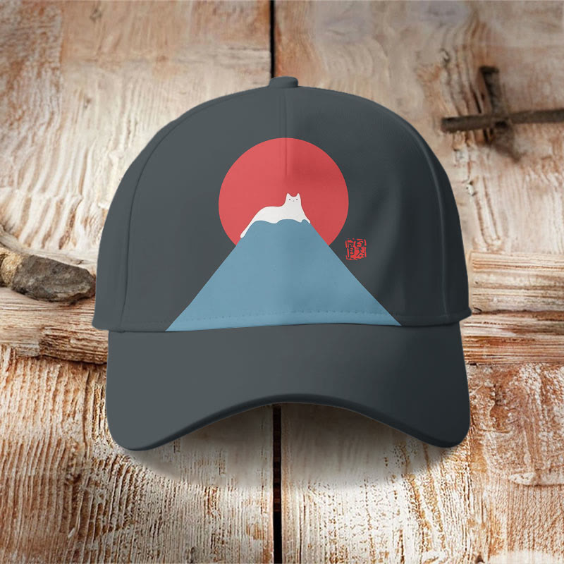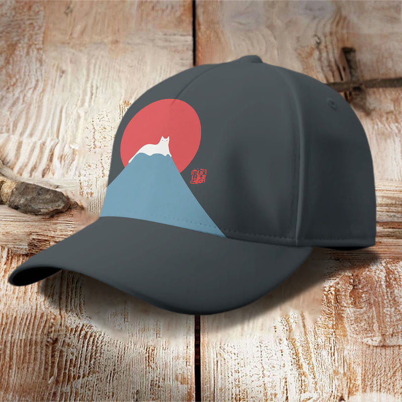White Cat Snow On Mount Fuji Japanese Art Cap