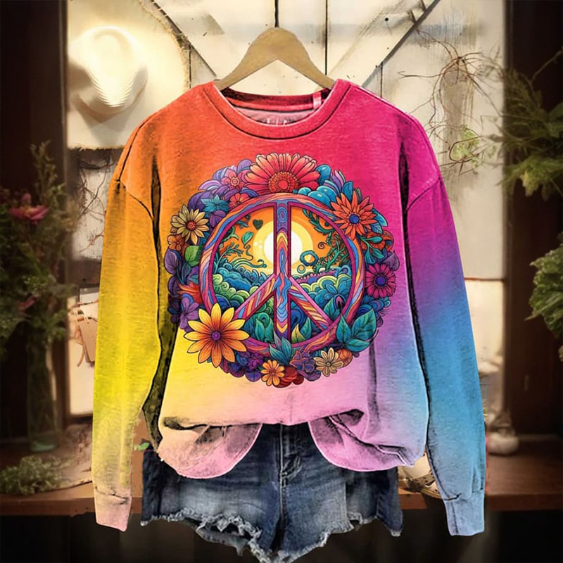 Women's Hippie Peace Sign Rainbow Love And Peace Printed Sweatshirt
